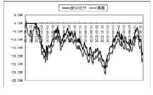 1.9.4 报告期末持有的处于转股期的可转换债券明细 注:本基金本报告期末未持有处于转股期的可转换债券。 1.9.5 报告期末前十名股票中存在流通受限情况的说明 1.9.5.1 报告期末指数投资前十名股票中存在流通受限情况的说明 注:本基金本报告期末指数投资前十名股票中不存在流通受限的情况。 1.9.5.2 报告期末积极投资前五名股票中存在流通受限情况的说明 注:本基金本报告期末未进行积极投资,不存在流通受限情况。 十二、基金的业绩 本基金管理人依照恪尽职守、诚实信用、谨慎勤勉的原则管理和运用基金财产,但不保证基金一定盈利,也不保证最低收益。基金的过往业绩并不代表其未来表现。投资有风险,投资者在做出投资决策前应仔细阅读本基金的招募说明书。 (一)本基金份额净值增长率与同期业绩比较基准收益率比较表: