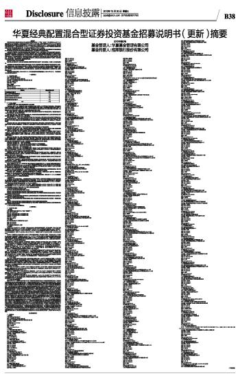 基金管理人:华夏基金管理有限公司 基金托管人:招商银行股份有限公司 重要提示 华夏经典配置混合型证券投资基金(原中信经典配置证券投资基金,以下简称“本基金”)经中国证监会2004年1月18日证监基金字[2004]7号批准募集。本基金的基金合同于2004年3月15日正式生效。根据中国证监会2009年1月4日《关于核准中信经典配置证券投资基金等四只基金基金份额持有人大会决议的批复》(证监许可[2009]1号),本基金的基金管理人更换为华夏基金管理有限公司。根据本基金管理人2010年3月11日刊登的《华夏基金管理有限公司关于修订中信经典配置证券投资基金基金合同及托管协议部分条款的公告》,有关的基金合同修订自2010年3月24日起生效。 基金管理人保证招募说明书的内容真实、准确、完整。本招募说明书经中国证监会核准,但中国证监会对本基金募集的核准,并不表明其对本基金的价值和收益作出实质性判断或保证,也不表明投资于本基金没有风险。 本基金投资于证券市场,基金净值会因为证券市场波动等因素产生波动,投资者根据所持有的基金份额享受基金收益,同时承担相应的投资风险。本基金投资中的风险包括:因整体政治、经济、社会等环境因素对证券市场价格产生影响而形成的系统性风险,个别证券特有的非系统性风险,由于基金份额持有人连续大量赎回基金产生的流动性风险,基金管理人在基金管理实施过程中产生的积极管理风险,本基金的特定风险等。本基金追求资产配置动态平衡、收益和长期资本增值平衡,风险适中。投资有风险,投资人申购基金时,应认真阅读本招募说明书,全面认识本基金的风险收益特征和产品特性,并充分考虑自身的风险承受能力,理性判断市场,谨慎做出投资决策。 基金的过往业绩并不预示其未来表现。 基金管理人依照恪尽职守、诚实信用、谨慎勤勉的原则管理和运用基金资产,但不保证基金一定盈利,也不保证最低收益。 本摘要根据《华夏经典配置混合型证券投资基金基金合同》和《华夏经典配置混合型证券投资基金招募说明书》编写,并经中国证监会核准。基金合同是约定基金当事人之间权利、义务的法律文件。基金投资人自依基金合同取得基金份额,即成为基金份额持有人和本基金合同的当事人,其持有基金份额的行为本身即表明其对基金合同的承认和接受,并按照《基金法》、《运作办法》、基金合同及其他有关规定享有权利、承担义务。基金投资人欲了解基金份额持有人的权利和义务,应详细查阅基金合同。 本招募说明书所载内容截止日为2013年9月15日,有关财务数据和净值表现数据截止日为2013年6月30日。(本招募说明书中的财务资料未经审计) 一、基金管理人 (一)基金管理人概况 名称:华夏基金管理有限公司 住所:北京市顺义区天竺空港工业区A区 办公地址:北京市西城区金融大街33号通泰大厦B座12层 设立日期:1998年4月9日 法定代表人:王东明 联系人:崔雁巍 客户服务电话:400-818-6666 传真:010-63136700 华夏基金管理有限公司注册资本为23800万元,公司股权结构如下:
