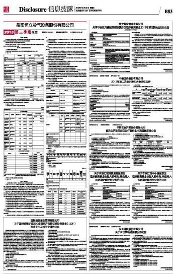 岳阳恒立冷气设备股份有限公司2013第三季度报告