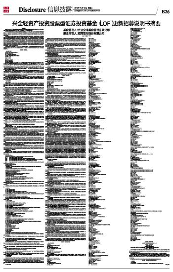 兴全轻资产投资股票型证券投资基金(LOF)更新招募说明书摘要 2013-11-19 来源:证券时报网 作者: