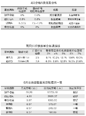 中国基金报记者 杨磊 年化收益7%的保险理财产品淘宝上线10分钟卖出1亿!年化收益6.8%的银行百万高端理财上线即被疯抢!年化收益6%的基金A类份额淘宝上线当日卖出2.2亿! 理财市场青睐那些年化收益率6%以上的理财产品,特别是预期收益率7%左右的产品。除了这些热销产品,投资者还有什么渠道可以实现6%~7%的年化收益?《中国基金报》理财工作室以货币基金、分级低风险(A类)份额和杠杆债基为组合,精选出5组目标年化收益率7%左右的理财产品,供投资者参考。 保流动:首选大公司T+0货币基金 货币基金是目前低风险理财产品中流动性最好的理财产品之一,目前主流的货币基金年化收益率在4.5%到5%之间,并且还有缓慢上升趋势,预计未来将向5%左右进军。 投资者可以通过各家基金公司网上银行开户购买货币基金,享受一定限额内的赎回“T+0”,提高货币基金的流动性。 不少基金公司也推出了网上银行类货币基金的理财工具,投资者将资金转到该账户即可分享对应货币基金的收益率,例如,华夏基金“活期通”,广发基金“钱袋子”等理财工具。 在具体产品方面,选择大型基金公司旗下的货币基金更能保证较高的收益率,例如华夏现金、南方增利A、易方达货币A、广发货币A等产品。 稳收益:精选分级基金低风险份额 近几年深交所分级基金大发展,分级基金低风险份额已经有超过50只产品,《中国基金报》理财工作室通过成交量和预期收益率两轮筛选,选择了银华稳进、创业板A、聚利A和申万收益4只产品。 分级低风险份额首先要有一定的流动性,将日均成交量高于200万的分级基金筛选出来,第二轮进行收益率筛选,由于目标收益率需要达到7%左右,在折价率不变情况下,从中筛选出预期年收益率6.5%以上的分级低风险份额。 4只产品各有优势,银华稳进最大的优势是成交最活跃,日均成交量超过1亿元;创业板A最大的优势是规模不断增长,成交量收益率配比合适;聚利A最大的优势在于有到期日,持有到期不受折价率变化影响;申万收益最大的优势在于收益率高,折价率不变的情况下年收益率可达8%左右。 博杠杆:关注明年到期杠杆债基 折价交易的杠杆债券基金也是可投资的重要选择,理财工作室选择产品时首先将流动性最差的产品剔除,然后根据折价率和到期时间综合分析,将丰利B和裕祥B作为两个主要可选投资标的,两只产品2014年6月或11月到期,主要投资收益率来源于三个方面,第一是折价带来收益,第二是母基金投资收益,第三是杠杆投资扣除资金成本后收益。 工作室以预期母基金年化收益3%~7%,杠杆债基到期折价0.5%,测算出主要收益率分布区间对应的投资收益率,收益率6%~21.6%。 不过需要注意的是,这两只杠杆基金对应的A类份额今年11月和12月开放申赎,份额预计将有所减少,导致杠杆比例有所下降。 综合策略:核心卫星投资 综合以上三类投资产品的优势和劣势,综合收益率、流动性、风险等方面的因素,投资者采取核心卫星式投资策略较合适。核心为分级低风险份额,投资比例最大,超过50%,辅助以货币基金和杠杆债券基金进行投资。 配置20%~30%货币基金 货币基金最大的优势是流动性好,基金公司网上直销可以实现“T+0”,相比目标收益率7%来说,劣势在于投资收益率较低,因此货币基金投资比例不能太高,太高了不利于提高整个投资组合的投资收益率。 配置50%~70%分级低风险份额 分级低风险份额的主要优势在于流动性好,银华稳进日均成交量超过1亿元,投资收益率适中,和7%的目标收益率相近,主要劣势在于交易价格有波动,特别是申万收益受到股市的影响很大,投资收益率将出现波动,因此投资申万进取单只产品的比例不适合太高,最高不超过20%。同等类型情况下,优先选择成交更加活跃的银华稳进,配合另外3只分级A类份额进行投资。 配置杠杆债基10%~20% 杠杆债券基金产品的最大优势在于预期投资收益率较高,母基金年收益率为3%,投资丰利B一年也能有8%收益,当母基金投资年收益率在5%~7%时,杠杆债基投资年化收益率可达12.5%~21.6%左右,有助于提高整个组合的投资收益率。但杠杆债基的主要劣势在于成交量不大和债市仍有不确定性。两只封闭债基的日均成交量只有160万到380万,成交量不是很大。 五大投资组合建议 NO.1 ●该组合在利用货币基金保障一定无风险收益后,通过配置到期收益率较高的分级基金优先份额和杠杆债基,来达到获取超额收益的目的。但是组合的目标持有期限不明,而持有期限长短对优先份额折溢价波动有重要影响。并且,分级基金优先份额要始终受债市波动影响,再加上配有分级债基进取份额,整个组合获利情况受未来债市走势影响大。(好买财富)