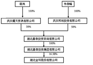 第一节 释义 除非另有说明,以下简称在本报告书中作如下释义: 信息披露义务人 指 朱俊峰先生 湖北金环、上市公司 指 湖北金环股份有限公司 本次权益变动 指 公司控股股东湖北嘉信投资集团公司的股东湖北嘉信投资咨询有限公司与实际控制人朱俊峰先生签署《股份转让协议》 《公司法》 指 《中华人民共和国公司法》 《证券法》 指 《中华人民共和国证券法》 报告、本报告、本报告书 指 湖北金环股份有限公司详式权益变动报告书 元 指 人民币元 第二节 信息披露义务人介绍 一、 信息披露义务人基本情况 姓名:朱俊峰 性别:男 国籍:中国 其他国家或地区的居留权:无 身份证号码:42010619701101**** 通讯地址:湖北省襄阳市樊城区陈家湖 住所:湖北省武汉市江汉区**** 通讯地址邮政编码:441133 联系电话:0710-2108234 二、最近五年内的任职情况 信息披露义务人最近五年的任职情况如下: ■ 三、最近五年内是否受过行政处罚、刑事处罚、是否涉及重大民事诉讼或者仲裁事项 信息披露义务人最近五年内未受过行政处罚、刑事处罚、也没有涉及与经济纠纷有关的重大民事诉讼或者仲裁事项,最近三年未有严重的证券市场失信行为。 四、信息披露义务人所控制的核心企业、核心业务、关联企业及主营业务的情况说明 截止本报告书签署日,信息披露义务人投资的除湖北金环以外的企业及其主营业务基本情况如下: ■ 五、信息披露义务人在境内、境外其他上市公司拥有权益的股份达到或超过该公司已发行股份5%的简要情况 截至本报告书签署之日,信息披露义务人不存在控股、直接或间接控制除湖北金环以外其他境内、境外上市公司的情况;不存在持有境内、境外上市公司以及银行、信托公司、证券公司、保险公司等其他金融机构股份超过5%的情况。 第三节 本次权益变动的目的 一、本次权益变动的目的 为支持上市公司发展,实际控制人朱俊峰先生通过本次股份转让,进一步优化湖北金环的股权结构,以满足公司未来发展的需求。 二、未来十二个月继续增减持股份的计划 截至本报告书签署之日,信息披露义务人暂无在未来十二个月内进一步增持上市公司股份的计划。若今后信息披露义务人发生增持股份的行为,信息披露义务人将严格按照相关法律法规的要求,履行信息披露义务。 信息披露义务人承诺持有的被收购公司的股份,在收购完成后12个月内不进行转让。 三、信息披露义务人做出本次权益变动决定所履行的相关程序 本次权益变动无需履行其他授权和批准。 第四节 权益变动方式 一、权益变动情况 本次权益变动前,信息披露义务人为湖北金环的实际控制人。 本次权益变动由公司控股股东湖北嘉信投资集团公司的股东湖北嘉信投资咨询有限公司与实际控制人朱俊峰先生签署《股份转让协议》引起,根据该协议,公司另一实际控制人蒋岚先生将不在具有上市公司相关控制权。 本次权益变动以后,公司实际控制人为朱俊峰先生一人。 二、权益变动方式 2013年11月28日,朱俊峰先生与湖北嘉信投资咨询有限公司签署了《股权转让协议》,协议约定:湖北嘉信投资咨询有限公司将其持有的湖北嘉信投资集团有限公司100%股权分别转让给朱俊峰99%、胡爱珍1%。 因胡爱珍女士为朱俊峰先生配偶,因此,胡爱珍女士和朱俊峰先生为一致行动人。 本次权益变动前后控制关系变动图如下: (一)本次权益变动前公司与实际控制人之间的产权及控制关系图 ■ (二)本次权益变动后公司与实际控制人之间的产权及控制关系图 ■ 四、本次转让对上市公司的影响 本次交易为实际控制人之间的股权转让,本次股权转让不存在损害上市公司及其他股东利益的情形。 第五节 资金来源 一、资金总额及其来源 信息披露义务人转让协议所需资金均来自于信息披露义务人的自有资金,未直接或间接来源于湖北金环及其关联方,也未与湖北金环进行资产置换或者其他交易获取现金。 二、关于资金来源的承诺 信息披露义务人承诺:“本人转让协议相关的资金来源于自有资金,不存在受到上市公司直接或间接资助的情况,收购资金来源不存在任何违法情形。” 三、转让价款、支付方式及付款安排 湖北嘉信投资咨询有限公司与朱俊峰先生和胡爱珍女士约定的湖北嘉信投资集团有限公司股权转让总价款为人民币21800万元,具体付款时间及方式由双方另行订立补充协议。 第六节 后续计划 本次权益变动为属上市公司两个实际控制人之间的股份转让行为。未来12 个月内,公司对上市公司的后续计划安排如下: 一、未来十二个月内对上市公司主营业务进行调整的计划 信息披露义务人正在积极推动上市公司通过重大资产重组等方式来提升上市公司经营情况,为全体股东创造更大价值。 二、未来十二个月内对上市公司(含子公司)资产及业务出售、合并、与他人合资或合作计划 2013年11月13日,湖北金环发布公告,拟与新疆天鹅特种纤维有限公司共同设立合资公司,由合资公司建设2万吨莫代尔生产项目。湖北金环作为合资公司的出资人,以现金出资人民币1.6亿元,占合资公司注册资本的40%等事项已经上市公司股东大会审议通过,仍需新疆天鹅特种纤维有限公司之控股股东恒天天鹅股份有限公司(证券代码:000687)董事会及股东大会审议通过方可生效。 除上述正在进行且未完成的交易外,信息披露义