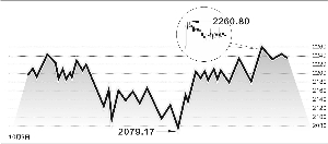 从上证指数60分钟K线图上看,在2250点下方已经运行了16个小时,其中5根阳线11根阴线,说明这个整理过程偏弱。从整理时间和成交量变化看,股指短线面临方向选择。 (彭春霞/制图)