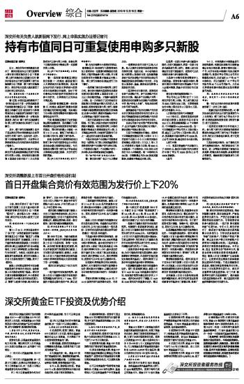 深交所调整新股上市首日开盘价格形成机制 首日开盘集合竞价有效范围为发行价上下20% 2013-12-16 来源:证券时报网 作者:胡学文