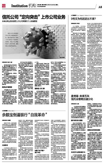 信托公司“定向突击”上市公司业务未来会将业务拓展至上市公司高管的个人财富管理 2013-12-16 来源:证券时报网 作者:秦利 刘雁