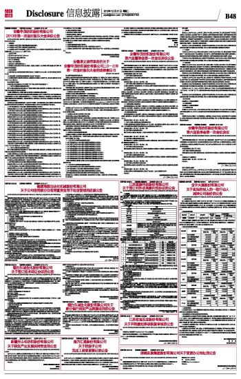 公司简称:天山纺织 股票代码:000813 公告号:2013-047 新疆天山毛纺织股份有限公司 关于获批产业发展扶持资金的公告 本公司及其董事会全体成员保证信息披露内容的真实、准确、完整,没有虚假记载、误导性陈述或重大遗漏。 2013年12月30日,新疆天山毛纺织股份有限公司(以下简称"公司")收到乌鲁木齐高新技术产业开发区(新市区)财政局下发的《关于拨付产业发展扶持资金的通知》(乌高(新)区财【2013】号)114号文件,为支持公司毛纺织业的发展,高新区(新市区)财政局拨付公司产业发展扶持资金1283万元。公司目前尚未收到该笔资金。本着审慎的原则,公司收到该笔资金后将及时公告。 特此公告。 新疆天山毛纺织股份有限公司 董事会 2013年12月30日 证券代码:000920 证券简称:南方汇通 公告编号:2013-056 南方汇通股份有限公司 关于控股子公司 完成工商变更登记的公告 本公司及其董事会全体成员保证信息披露内容的真实、准确、完整,没有虚假记载、误导性陈述或重大遗漏。 公司于2013年12月30日收到控股子公司贵州大自然科技有限公司(简称"大自然公司")送达的工商变更登记相关资料。大自然公司增资的工商变更登记手续已在贵阳市白云区工商行政管理局办理完毕。 大自然公司增资的相关信息详见刊载于"巨潮资讯网"和2013年11月16日《证券时报》B28版的《南方汇通股份有限公司关于控股子公司贵州大自然科技有限公司增资的公告》(公告编号:2013-048)。 南方汇通股份有限公司董事会 2013年12月30日 证券代码:002071 证券简称:江苏宏宝 公告编号:2013-056 江苏宏宝五金股份有限公司 关于并购重组事项恢复审核的公告 本公司及董事会全体成员保证信息披露的内容真实、准确、完整,没有虚假记载、误导性陈述或重大遗漏。 特别提示:公司股票将于2013年12月30日下午13:00起复牌。 根据中国证监会网站披露的《上市公司并购重组行政许可申请基本信息及审核进度表(截至2013年12月27日)》,我公司并购重组申请影响消除恢复审核。 特此公告 江苏宏宝五金股份有限公司董事会 二〇一三年十二月三十日 证券代码:000722 证券简称:湖南发展 公告编号:2013-038 湖南发展集团股份有限公司关于变更办公地址的公告 本公司及董事会全体成员保证信息披露的内容真实、准确、完整,没有虚假记载、误导性陈述或重大遗漏。 湖南发展集团股份有限公司(以下简称"公司")自2013年12月30日起搬迁至新址办公,公司联系电话、传真、公司网站网址保持不变。为了便于投资者与公司联系,现将公司新办公地址及联系方式公告如下: 办公地址:湖南省长沙市天心区芙蓉中路三段142号B座光大发展大厦第27楼 邮政编码:410015 联系电话:0731-88789296 传 真:0731-88789256 公司网站:http://www.hnfzgf.com/ 特此公告。 湖南发展集团股份有限公司董事会 二○一三年十二月三十日 本版导读: