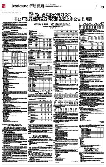黄山金马股份有限公司非公开发行股票发行情况报告暨上市公告书摘要