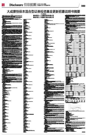 重 要 提 示 大成景恒保本混合型证券投资基金经中国证监会2012年4月27日证监许可【2012】567号文核准募集,本基金的基金合同于2012年6月15日正式生效。 基金管理人保证本招募说明书的内容真实、准确、完整。本招募说明书经中国证监会核准,但中国证监会对本基金募集的核准,并不表明中国证监会对本基金的价值和收益做出实质性判断或保证,也不表明投资于本基金没有风险。 本基金为保本基金,但是投资者投资于保本基金并不等于将资金作为存款存放在银行或存款类金融机构,在出现保证风险或不可抗力风险等极端情况下保本基金仍然存在本金损失的风险。投资者购买基金份额的行为视为同意《大成景恒保本混合型证券投资基金保证合同》的约定。 基金管理人承诺依照恪尽职守、诚实信用、谨慎勤勉的原则管理和运用基金财产,但不保证基金一定盈利,也不保证最低收益。 投资有风险,投资者申购基金时,请仔细阅读本基金的招募说明书及基金合同。 基金的过往业绩并不预示其未来表现。基金管理人管理的其他基金的业绩并不构成本基金业绩表现的保证。 本更新的招募说明书已经本基金托管人复核。所载内容截止日为2013年12月15日,有关财务数据和净值表现截止日为2013年9月30日(财务数据未经审计)。 一、基金管理人 (一)基金管理人概况 名称:大成基金管理有限公司 住所:深圳市福田区深南大道7088号招商银行大厦32层 办公地址:深圳市福田区深南大道7088号招商银行大厦32层 设立日期:1999年4月12日 注册资本:贰亿元人民币 股权结构:公司股东为中泰信托有限责任公司(持股比例48%)、中国银河投资管理有限公司(持股比例25%)、光大证券股份有限公司(持股比例25%)、广东证券股份有限公司(持股比例2%)四家公司。 法定代表人:张树忠 电话:0755-83183388 传真:0755-83199588 联系人:肖冰 大成基金管理有限公司设有股东会、董事会、监事会,下设二十个部门,分别是股票投资部、数量投资部、社保基金及机构投资部、固定收益部、委托投资部、研究部、交易管理部、产品开发与金融工程部、信息技术部、客户服务部、市场部、总经理办公室、董事会办公室、人力资源部、计划财务部、行政部、基金运营部、监察稽核部、风险管理部和国际业务部。公司在北京、上海、西安、成都、武汉、福州、沈阳、广州和南京等地设立了九家分公司,拥有两家子公司,分别为大成国际资产管理有限公司及大成创新资本管理有限公司。此外,公司还设立了投资决策委员会、投资风险控制委员会和战略规划委员会等专业委员会。 公司以“责任、回报、专业、进取”为经营理念,坚持“诚实信用、勤勉尽责”的企业精神,致力于开拓基金及证券市场业务,以稳健灵活的投资策略和注重绩优、高成长的投资组合,力求为投资者获得更大投资回报。公司所有人员在最近三年内均未受到所在单位及有关管理部门的处罚。 (二)证券投资基金管理情况 截至2013年12月15日,本基金管理人共管理2只封闭式证券投资基金:景宏证券投资基金、景福证券投资基金,4只ETF及2只ETF联接基金:大成中证100交易型开放式指数证券投资基金、深证成长40交易型开放式指数证券投资基金及大成深证成长40交易型开放式指数证券投资基金联接基金、中证500深市交易型开放式指数证券投资基金、中证500沪市交易型开放式指数证券投资基金及大成中证500沪市交易型开放式指数证券投资基金联接基金,1只QDII基金:大成标普500等权重指数证券投资基金及31只开放式证券投资基金:大成景丰债券型证券投资基金(LOF)、大成价值增长证券投资基金、大成债券投资基金、大成蓝筹稳健证券投资基金、大成精选增值混合型证券投资基金、大成货币市场证券投资基金、大成沪深300指数证券投资基金、大成财富管理2020生命周期证券投资基金、大成积极成长股票型证券投资基金、大成创新成长混合型证券投资基金(LOF)、大成景阳领先股票型证券投资基金、大成强化收益债券型证券投资基金、大成策略回报股票型证券投资基金、大成行业轮动股票型证券投资基金、大成中证红利指数证券投资基金、大成核心双动力股票型证券投资基金、大成保本混合型证券投资基金、大成景恒保本混合型证券投资基金、大成内需增长股票型证券投资基金、大成可转债增强债券型证券投资基金、大成中证内地消费主题指数证券投资基金、大成新锐产业股票型证券投资基金、大成优选股票型证券投资基金(LOF)、大成月添利理财债券型证券投资基金、大成现金增利货币市场证券投资基金、大成理财 21天债券型发起式证券投资基金、大成现金宝场内实时申赎货币市场基金、大成景安短融债券型证券投资基金、大成景兴信用债债券型证券投资基金、大成景旭纯债债券型证券投资基金和大成景祥分级债券型证券投资基金。 (三)主要人员情况 1.公司高级管理人员 董事会: 张树忠先生,董事长,经济学博士。1989年7月-1993年2月,任中央财经大学财政系讲师;1993年2月-1997年3月,任华夏证券股份有限公司投资银行总部总经理、研究发展部总经理;1997年3月-2003年7月,任光大证券股份有限公司总裁助理兼北方总部总经理、资产管理总监;2003年7月-2004年6月,任光大保德信基金管理公司董事、副总经理;2004年6月-2006年12月,任大通证券股份有限公司副总经