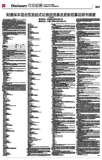 财通保本混合型发起式证券投资基金更新招募说明书摘要(2013年第2号) 2014-01-30 来源:证券时报网 作者: