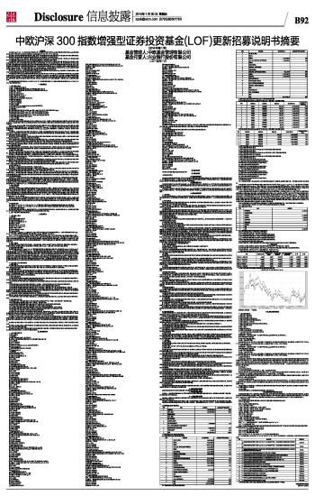 中欧沪深300指数增强型证券投资基金(LOF)更新招募说明书摘要
