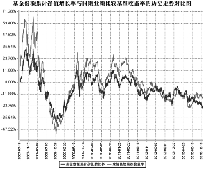 1.10.4 报告期末持有的处于转股期的可转换债券明细 本基金本报告期末未持有处于转股期的可转换债券。 1.10.5 报告期末前十名股票中存在流通受限情况的说明 本基金本报告期末前十名股票中不存在流通受限情况。 1.10.6 投资组合报告附注的其他文字描述部分 无。 十二、基金的业绩 基金管理人承诺以恪尽职守、诚实信用、勤勉尽责的原则管理和运用基金财产,但不保证基金一定盈利,也不向投资者保证最低收益。基金的过往业绩并不代表其未来表现。投资有风险,投资者在作出投资决策前应仔细阅读本基金的招募说明书。 本基金合同生效日为2007年7月18日,基金合同生效以来(截至2013年12月31日)的投资业绩及同期基准的比较如下表所示: