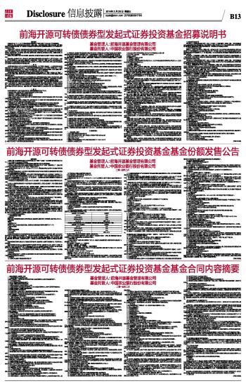 前海开源可转债债券型发起式证券投资基金基金份额发售公告 2014-02-26 来源:证券时报网 作者:
