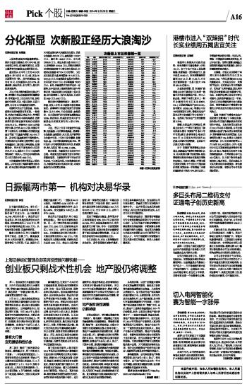 分化渐显 次新股正经历大浪淘沙 2014-02-26 来源:证券时报网 作者:朱雪莲