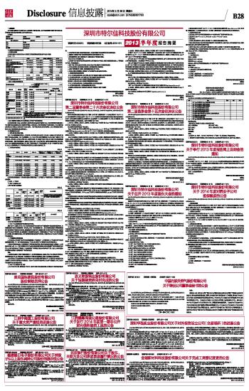 深圳市特尔佳科技股份有限公司2013年度报告摘要