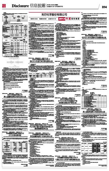 利尔化学股份有限公司 监事会 二〇一四年二年二十八日 本版导读: