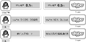 腾讯QQ:业务地位胜Skype 作为腾讯所有业务的基础,腾讯QQ软件是全球最大的即时通讯软件。腾讯2013第三季财报显示,QQ用户月活跃账户为8.156亿,同比增加4%。其中,智能终端月活跃账户季比增长10.1%,意味着QQ手机版的接受度不断提高。 世界即时通讯巨头Skype当前在全球范围内拥有6.5亿用户,定位于为企业和个人提供语音、视频及信息服务。但随着移动互联网的逐步兴起,Skype逐步演变为PC端与移动端的IP通信产品,微软公司于2011年出价85亿美元将其收入囊中,并将原有的即时通信软件MSN整合进Skype业务,利用用户资源优势,将旗下的Outlook、手机操作系统等业务进行串联。 根据微软的财报,Skype部门2012年的年营收近20亿美元,较2010年同期的8亿美元增长了150%。按照这一业绩增幅,Skype显然估值已经超过85亿美元。 对比QQ与Skype的运营数字可以发现,目前QQ用户较Skype更多。运营方式上,腾讯和微软有着截然不同的理念。腾讯的组织构架中,QQ作为连接各项业务的平台,在软件中整合了游戏、网页、移动端、社交网络、增值服务等各项环节,利用各项业务增强QQ用户黏性,维持自身优势并实现商业化。 Skype则为微软环节中的一个组成部分,在视窗系统的基础上,Skype承担了为用户提供沟通的便利,是用于市场竞争的一个子业务。可见,腾讯QQ业务的估值要高于Skype。