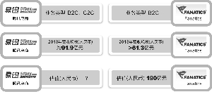 腾讯电商:规模与Fanatics相当 目前腾讯在电商领域共存在三大板块,分别为易迅网、QQ网购以及拍拍网,前两者定位为B2C模式,易迅网是目前腾讯自营电商的核心平台,QQ网购则是一个开放的电商平台,而拍拍网定位则是C2C模式,类似于淘宝网。 根据2012年年报,腾讯电子商务交易业务收入为44.28亿元;2013年前三季度,腾讯电商业务均保持100%以上的同比增速,前三季度营收分别达到19.13亿元、21.99亿元、23.59亿元,占腾讯总收入比重约15%。按照这一增速测算,腾讯2013年全年电商收入有望超过90亿元。 当前中国与美国分列网络零售市场前二位,中国市场规模约2800亿美元,美国约2500亿美元。美国电商网站Fanatics目前营收规模与腾讯电商较为接近,2012年均为8亿美元,2013年均突破10亿美元大关。这家注重于体育用品及衍生品销售的公司成立于1995年,1997年开始线上销售后,营收开始大幅增长。Fanatics曾于2013年接受阿里巴巴投资1.7亿美元,当时估值为31亿美元。 不同的是,腾讯电商营业模式并非垂直式的B2C,而是涵盖了B2C、C2C等多种模式,与即将上市的电商巨头京东商城存在类似之处。京东2013年前三季度营收为492.16亿元人民币,美国独立分析机构ABR Investment Strategy发布报告称,京东的估值在310亿美元至440亿美元之间。 由于腾讯2013年前三季度电商营收规模为64.5亿元人民币,约为京东的1/8。如果参考京东的估值体系,腾讯电商估值应比Fanatics高出一些。