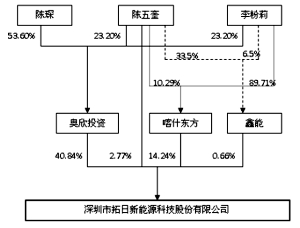1、重要提示 本年度报告摘要来自年度报告全文,投资者欲了解详细内容,应当仔细阅读同时刊载于深圳证券交易所网站等中国证监会指定网站上的年度报告全文。 公司简介 ■ 2、主要财务数据和股东变化 (1)主要财务数据 公司是否因会计政策变更及会计差错更正等追溯调整或重述以前年度会计数据 □ 是 √ 否 ■ (2)前10名股东持股情况表 ■ (3)以方框图形式披露公司与实际控制人之间的产权及控制关系 ■ 3、管理层讨论与分析 报告期内,国内光伏支持政策相继出台,光伏产业恢复生机,面对复杂多变、竞争激烈的国内外经济环境,拓日新能领导团队秉承“开拓、创新、务实、高效”的核心宗旨,调整经营思路,紧抓市场机遇;加强技术研发创新、加快研发成果产业化;加强成本控制,保障稳健发展;实现了营业收入和净利润的大幅增长。报告期内,实现营业收入1,064,231,728.63元,同比增长101.14%,归属于上市公司股东的净利润12,980,665.57元,比上年同期增长143.78%。 报告期内, 拓日新能在国内市场方面取得了良好的业绩。2013年国家各部委相继出台光伏电价支持、光伏发电税收优惠等政策,为光伏产业的发展创造了新的机遇。特别是在光伏行业面临经济环境复杂多变的重重压力下,拓日新能秉承勤勉诚信、厚德载物的良好信誉和品牌优势,为拓展国内光伏产品应用市场奠基了坚实的基础,拓日新能承担光伏电站的优化设计及EPC工程建设,光伏、光热产品的推广应用,国内销售业绩取得了突破性进展。利用自身多年来在太阳能光伏建筑一体化项目及地面光伏电站项目的建设和运营经验,为客户提供优质的工程服务和产品供应,拓日品牌在国内知名度进一步提升。报告期内,拓日新能累计完成EPC光伏电站建设约50MW装机量并实现并网。通过这些项目的设计、建设、验收及并网,公司累积了宝贵的经验,为国内光伏电站项目的建设和运营奠定了坚实的基础,进一步提升了公司在光伏电站建设领域的技术实力。报告期内,拓日新能在国内组件销售方面,累计实现约66MW太阳能电池组件销量。2013年,国内主营业务销售收入达76,094.33万元,占主营业务总销售收入的72.38%。报告期内,公司 “120L一体式太阳能热水器”和“150L分体式太阳能热水器”经中检集团南方电子产品测试(深圳)有限公司检测,达到《家用太阳能热水系统能效限定值及能效等级》GB26969-2011规定的能效1级认定指标,标志着公司太阳能热水器产品不仅可用于各类太阳能光热工程,也可正式进入太阳能热水器家用市场,将更有利于公司光热产品在国内市场的推广和业务拓展。2014年1月,陕西子公司获得机电设备安装工程专业承包三级资质,将更进一步促进公司国内光伏及光热工程市场开拓。 2013年,拓日新能在国际市场方面取得了新的进展。拓日新能继续坚持自主品牌路线,以创新性的太阳能应用产品带动组件市场的销售和推广,有效地增强了公司国际市场的抗风险能力。报告期内,新增了四家知名的国际连锁超市客户,客户数量稳中有升,推出了多款创新性的太阳能应用产品和太阳能供电系统,深受客户青睐。2013年,公司太阳能应用产品及供电系统销量实现大幅增长,销售收入达12,431.64万元,比上年同期增长98.7%。 2013年,拓日新能在科技创新和研发成果转化方面取得了显著的成绩。报告期内,拓日新能在发明和实用新型专利方面共获得47项专利授权。公司依托科技创新的企业特点,在产业链相关的设备、工艺及原材料等方面不断进行研发和技术创新,提升生产效率和降低生产成本,进一步增强了公司的成本控制能力。在晶体硅太阳电池领域,通过工艺优化及技术改进,提高了太阳电池的转化效率和生产合格率;太阳电池用导电微纳米铝浆的自产以及印刷专用网版的自制,极大增强了印刷效果及网版图形的互适性,降低太阳电池的生产成本。在非晶硅太阳电池和光伏玻璃技术领域:大尺寸非晶硅光伏生产线已完成设备自制及安装,进入试生产阶段;超白镀膜光伏玻璃生产线完成石英砂原料分选系统以及连续式镀膜系统的技术创新,提高生产效率和技术水平。另外光伏玻璃生产专用天然气管道顺利开通,玻璃的生产制造成本将进一步降低。 报告期内,公司进一步优化了人力资源管理,加强了绩效考核。在人才培养方面,公司通过加强新员工入职培训、有针对性的重点业务培训以及管理技术培训,完善了培训机制,使员工能力得到有效提升。在内部控制方面,对公司材料采购、资金管理、生产及业务的流程等方面进行了专项审计,完善集团化财务管理,梳理相关部门的规章制度并统一制定了集团公司相关部门的业绩考核办法。 公司立足自主创新,不断提升自身综合竞争力,已成为中国光伏行业“产业链最全”、“产品最丰富”的企业,能满足国内外客户各种个性化的光伏产品需求,“TOPRAYSOLAR”品牌已成为中国光伏行业最具价值的品牌之一。报告期内公司荣获首批“深圳市质量强市骨干企业”,并顺利通过了广东省经济和信息化委复审,再次获得广东省战略性新兴产业骨干企业荣誉称号。近年来,公司不断夯实基础、完善产业链和市场布局,随着目前行业景气度的提升,公司后续将逐步释放产能,以满足日益增加的客户需求。 4、涉及财务报告的相关事项 (1)与上年度财务报告相比,会计政策、会计估计和核算方法发生变化的情况说明 与上年