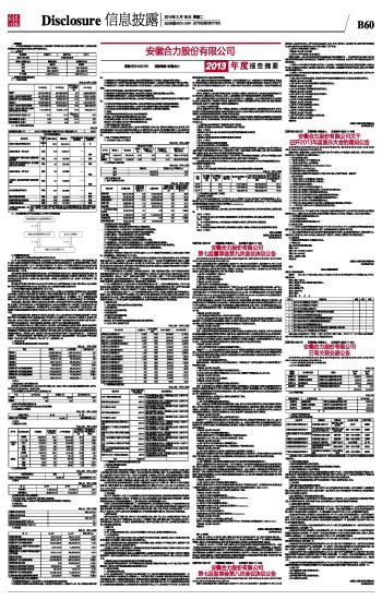 安徽合力股份有限公司2013年度报告摘要 2014-03-18 来源:证券时报网 作者: