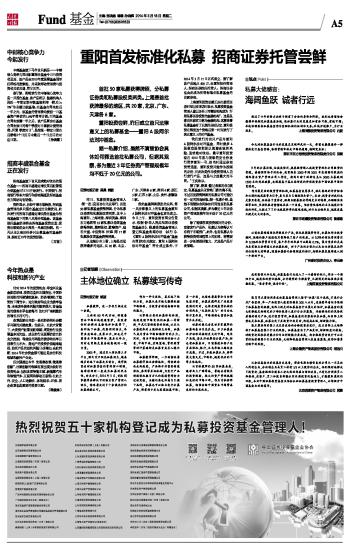 重阳首发标准化私募 招商证券托管尝鲜 2014-03-18 来源:证券时报网 作者:吴昊 姚波