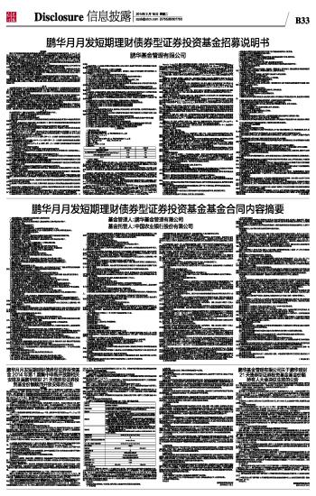 四、基金经理 刘太阳先生,国籍中国,理学硕士,8年金融证券从业经验。曾任中国农业银行金融市场部高级交易员,从事债券投资交易工作;2011年5月加盟鹏华基金管理有限公司,从事债券研究工作,担任固定收益部研究员。2012年9月起至今担任鹏华纯债债券型证券投资基金基金经理,2012年12月至2014年3月担任鹏华理财21天债券型证券投资基金(2014年3月已转型为鹏华月月发短期理财债券型证券投资基金)基金经理,2013年4月起兼任鹏华丰利分级债券型发起式证券投资基金基金经理,2013年5月起兼任鹏华实业债纯债债券型证券投资基金基金经理,2014年3月起兼任鹏华月月发短期理财债券型证券投资基金基金经理。刘太阳先生具备基金从业资格。 风险揭示: 本基金的风险主要包括:市场风险、操作风险、本基金的特有风险及其他风险等。 (一)市场风险 1、政策风险 因国家宏观政策发生变化,导致市场价格波动而产生风险。 2、经济周期风险 随经济运行的周期性变化,证券市场的收益水平也呈周期性变化。基金投资于证券市场,收益水平也会随之变化,从而产生风险。 3、利率风险 金融市场利率的波动会导致证券市场价格和收益率的变动。利率波动直接影响着债券及货币市场工具的价格和收益率。本基金主要投资于银行定期存款及大额存单、债券回购和短期债券(包括短期融资券、即将到期的中期票据等)等货币市场工具,其收益水平会受到利率变化和货币市场供求状况的影响。由于本基金在每个运作期内执行投资组合比例恒定、持有到期和到期日匹配的投资策略,因而在每个运作期内所持投资组合收益受利率波动影响较小,但从长期看利率的波动仍会对本基金的收益造成影响。 4、购买力风险 基金投资的目的是基金资产的保值增值,如果发生通货膨胀,基金投资于证券所获得的收益可能会被通货膨胀抵消,从而使基金的实际收益下降,影响基金资产的保值增值。 (二)操作风险 本基金为定期开放申购和赎回的基金,在基金定期开放日的各种交易行为或者后台运作中,可能因为技术系统的故障或者差错而影响交易的正常进行或者导致投资者的利益受到影响。这种技术风险可能来自基金管理人、登记机构、销售机构、证券交易所、证券登记结算机构等等。 (三)本基金的特有风险 1、管理风险 管理风险是指在基金管理运作过程中基金管理人的知识、经验、判断、决策、技能等,会影响其对信息的占有和对经济形势、证券价格走势的判断,从而影响基金收益水平的风险。由于本基金在每个运作期内执行投资组合比例恒定、持有到期和到期日匹配的投资策略,所以在每个运作期内相比一般采取主动操作策略的基金而言,所面临的管理风险相对较低。但从长期看,本基金的收益水平仍与基金管理人的管理水平、管理手段和管理技术等相关性较大,本基金可能因为基金管理人的因素而影响基金的长期收益水平。 2、有效投资风险 有效投资风险是指基金在每次打开申购赎回后无法迅速建仓从而影响基金收益的风险。由于本基金在每个运作期期末打开一次赎回、集中申购并执行到期日匹配的投资策略,所以在新的运作周期开始后应迅速将基金资产中所持有的现金投资于投资策略中所规定的各类货币市场工具,但当货币市场供求出现变化导致基金无法在每个运作期开始后迅速建仓时,会对基金收益造成影响。 3、信用风险 信用风险是指基金所投资债券或货币市场工具之发行人出现自身信用评级发生变化、违约、拒绝支付到期本息,可能导致基金资产损失和收益变化的风险。由于本基金在每个运作期内执行持有到期和到期日匹配的投资策略,所以基金资产和收益受因所持债券或货币市场工具发行人自身信用评级发生变化的影响较小,但当债券或货币市场工具发行人发生违约或拒绝支付到期本息的情况时,会对基金收益造成影响。 4、对手方风险 对手方风险是指由于基金在交收过程中发生违约,可能导致基金资产损失和收益变化的风险。本基金主要投资于银行定期存款及大额存单、债券回购和短期债券(包括短期融资券、即将到期的中期票据等),在投资银行存款、银行间市场债券逆回购等投资品种时需要引入交易对手方从而存在对手方风险,当交易对手方出现违约时将会导致基金资产无法获得约定收益或无法收回投资本金的风险,从而对基金收益造成影响。 5、再投资风险 再投资风险是指当利率下降对银行存款、固定收益证券或债券逆回购等利息收入及到期本金再投资收益的影响。当利率下降时,基金从投资的银行存款、固定收益证券或债券逆回购所得的利息收入进行再投资时,将获得比以前少的收益率,从而对基金收益造成影响。 6、流动性风险 流动性风险是指当基金开放集中申购、赎回后需要应对投资者的赎回时,如果基金资产不能迅速转变成现金,或者变现为现金时对资金净值产生不利的影响,从而影响基金收益的风险。本基金执行持有到期和到期日匹配的投资策略,在正常情况下面临的流动性风险较小,但因发生信用风险引发的债券或货币市场工具发行人违约或存款银行拒绝支付到期本息的风险仍然存在。 7、无法及时赎回基金份额的风险 无法及时赎回基金份额的风险是指在本基金的每个封闭运作期内,基金份额持有人面临不能及时赎回基金份额的风险。本