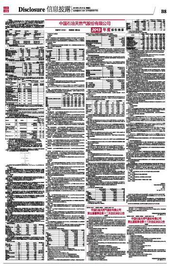 中国石油天然气股份有限公司2013年度报告摘要 2014-03-21 来源:证券时报网 作者: