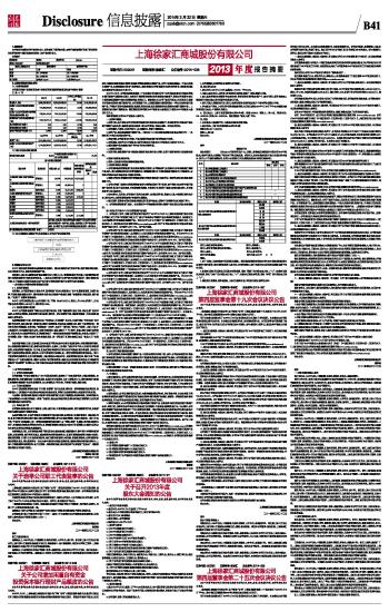 上海徐家汇商城股份有限公司2013年度报告摘要 2014-03-22 来源:证券时报网 作者: