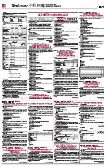 江苏澳洋科技股份有限公司2013年度报告摘要 2014-03-22 来源:证券时报网 作者: