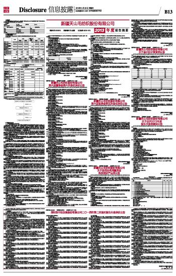 新疆天山毛纺织股份有限公司2013年度报告摘要