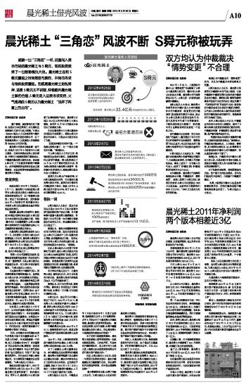 晨光稀土2011年净利润两个版本相差近3亿 2014-03-26 来源:证券时报网 作者:余胜良