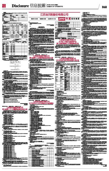 证券代码:000890 证券简称:法尔胜 公告编号:2014-002 江苏法尔胜股份有限公司2013年度报告摘要 2014-03-26 来源:证券时报网 作者: