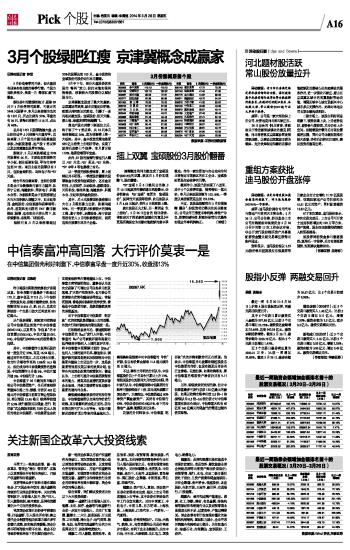 摘帽概念和河北概念成了宝硕股份(600155)的双翼,使其在3月份实现腾飞,股价翻番。 *ST宝硕3月6日晚间公告称,3月10日起复牌并撤销退市风险警示,证券简称由“*ST宝硕”变更为“宝硕股份”,复牌当天该股即涨停,此后该股从2月4.58元起步,依托5日线逐级上蹿。 就在该股正火之际,另一则消息“火上浇油”。3月26日出台的《河北省委、省政府关于推进新型城镇化的意见》中更是明确保定为首都功能疏解的集中承载地。作为一家注册地与办公地均为河北省保定市高新区的化工企业,宝硕股份更是拉动涨停的引擎。 截至昨日,该股已经实现了八连阳,其中5个以涨停收盘,强势特征一览无余。本月以来该股涨幅为102.18%,一季度以来涨幅更是达到152.32%。 不过,该股虽然顺利在3月实现摘帽“翻身”,但投资者仍需关注其业绩变化。公司去年三季度末净利润、净资产为负,依靠收储补偿、财政补贴等方式最终实现全年净利润转正。(钟恬) 本版导读: