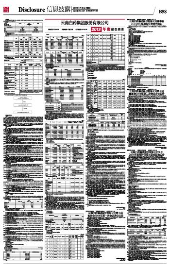 证券代码:000538 证券简称:云南白药 公告编号:2014-08 云南白药集团股份有限公司2013年度报告摘要 2014-03-28 来源:证券时报网 作者: