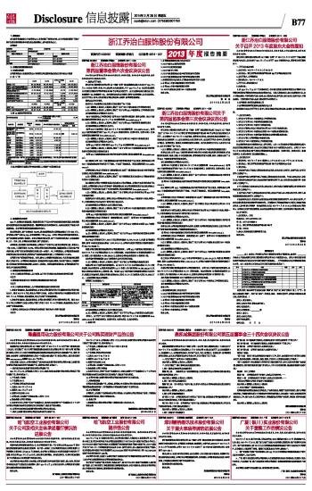 浙江乔治白服饰股份有限公司2013年度报告摘要