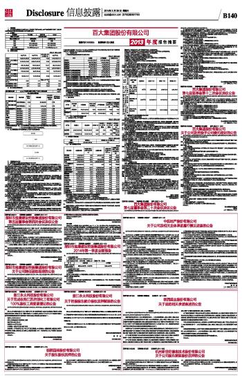 百大集团股份有限公司2013年度报告摘要 2014-03-29 来源:证券时报网 作者: