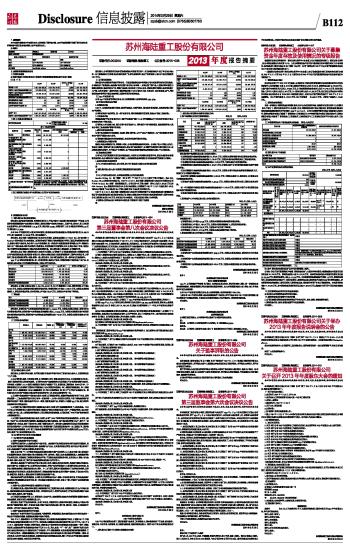 苏州海陆重工股份有限公司2013年度报告摘要 2014-03-29 来源:证券时报网 作者: