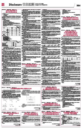 证券简称:天宝股份 证券代码:002220 公告编号:2014-011 大连天宝绿色食品股份有限公司 更正公告 本公司及董事会全体成员保证信息披露内容的真实、准确和完整,没有虚假记载、误导性陈述或重大遗漏。 大连天宝绿色食品股份有限公司(以下简称"公司")2014年3月28日在巨潮资讯网(www.cninfo.com.cn)披露了瑞华会计师事务所《关于大连天宝绿色食品股份有限公司关联方占用上市公司资金情况的专项审核报告》(瑞华核字[2014]第25020008 号),因工作人员疏忽,将审核报告附表(《上市公司 2013 年度控股股东及其他关联方资金占用情况汇总表》)中的"金额单位:人民币元"误写成"金额单位:人民币万元",特此更正。 本次更正不对公司披露的2013 年年度报告全文及其他相关文件造成影响,更正后的《关于大连天宝绿色食品股份有限公司关联方占用上市公司资金情况的专项审核报告》于2014年3月28日登载于巨潮资讯网(www.cninfo.com.cn),由此给投资者造成的不便,公司深表歉意。 特此公告。 大连天宝绿色食品股份有限公司 董事会 二〇一四年三月二十八日 证券代码:002226 证券简称:江南化工 公告编号:2014-014 安徽江南化工股份有限公司 关于公司财务总监辞职的公告 本公司及董事会全体成员保证公告内容真实、准确和完整,并对公告中的虚假记载、误导性陈述或者重大遗漏承担责任。 安徽江南化工股份有限公司(以下简称"公司")董事会于近日收到公司财务总监刘孟爱先生的书面辞职报告。 刘孟爱先生因个人原因申请辞去公司财务总监职务,辞职后将不在公司担任职务。根据《中华人民共和国公司法》、《深圳证券交易所中小企业板上市公司规范运作指引》及《公司章程》的有关规定,刘孟爱先生的辞职报告自送达董事会之日起生效,公司将按照法定程序尽快聘任财务总监。 公司董事会对刘孟爱先生在担任财务总监期间为公司做出的贡献表示衷心的感谢! 特此公告。 安徽江南化工股份有限公司 董事会 二〇一四年三月二十八日 证券代码:300141 证券简称:和顺电气 公告编号:2014-014 苏州工业园区和顺电气股份有限公司 2013年度报告披露的提示性公告 本公司及其董事会全体成员保证公告内容真实、准确和完整,没有虚假记载、误导性陈述或重大遗漏。 特别提示:本公司2013年度报告及摘要已于2014年03月29日在中国证监会指定的创业板信息披露网站上披露,请投资者注意查阅。 2014年03月28日,苏州工业园区和顺电气股份有限公司(以下简称"公司")召开第二届董事会第六次会议,审议通过了公司2013年度报告及其摘要等相关事项。为使投资者全面了解本公司的经营成果、财务状况及未来发展规划,公司《2013年度报告全文》、《2013年度报告摘要》于2014 年03月29日在中国证监会指定的创业板信息披露网站上披露: 巨潮资讯网网址为:http://www.cninfo.com.cn。 特此公告。 苏州工业园区和顺电气股份有限公司 董 事 会 2014年03月28日 证券代码:002680 证券简称:黄海机械 公告编号:2014-007 连云港黄海机械股份有限公司 2014年第一季度业绩预告 本公司及董事会全体成员保证信息披露的内容真实、准确、完整,没有虚假记载、误导性陈述或重大遗漏。 一、本期业绩预计情况 1、业绩预告期间:2014年1月1日至2014年3月31日 2、预计的业绩: □亏损 □扭亏为盈 □ 同向上升 √ 同向下降