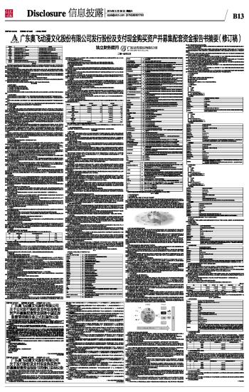 证券代码:002292 证券简称:奥飞动漫 公告编号:2014-011 广东奥飞动漫文化股份有限公司 关于发行股份及支付现金购买资产 并募集配套资金报告书的修订说明公告 本公司及董事会全体人员保证信息披露的内容真实、准确和完整,没有虚假记载、误导性陈述或者重大遗漏。 广东奥飞动漫文化股份有限公司(以下简称“公司”或“本公司”)于2013年11月12日公告了《广东奥飞动漫文化股份有限公司发行股份及支付现金购买资产并募集配套资金报告书(草案)》(以下简称“报告书”)。现根据中国证券监督管理委员会审核的要求,对报告书进行了相应补充和更新,主要内容如下: 1、因本次重组已取得中国证监会的核准批复,因此在“公司声明”中将“本报告书所述的本次发行股份及支付现金购买资产并募集配套资金的相关事项的生效和完成尚待取得有关审批机关的批准或核准”修改为“本报告书所述的本次发行股份及支付现金购买资产并募集配套资金的相关事项的生效和完成已经取得有关审批机关的批准或核准”;已在本次交易的决策过程等处增加了本次重组取得上述核准的说明;并删除了与审核相关的风险提示。 2、补充披露标的资产报告期内历次股权变动(尤其是停牌后股权转让)的必要性、作价依据及其合理性、程序合法合规性等分析。具体详见本报告书“第四章 交易标的基本情况”之“一、方寸科技的基本情况”之“(一)方寸科技概况”和“二、爱乐游的基本情况”之“(一)爱乐游概况”。 3、补充披露郑美琴不存在股份代持情况,具体详见本报告书“第三章 交易对方基本情况”之 “二、本次交易对方详细情况”之“(一)方寸科技交易对方”之“3、郑美琴”。 4、补充披露应趣网络有限合伙人、唐彦的身份及任职信息,具体详见本报告书“第三章 交易对方基本情况”之 “二、本次交易对方详细情况”之“(一)方寸科技交易对方”。 5、补充披露本次配套募集资金管理和使用的内部控制制度,具体详见本报告书“第五章 发行股份情况”之“四、配套募集资金管理和使用的内部控制制度”。 6、补充披露同时收购两家公司的必要性,自我组建团队与本次收购的优劣分析以及选择此次收购的原因。具体详见本报告书“第九章 本次交易对上市公司的影响”之“五、关于同时收购两家公司的必要性分析”和“六、自我组建团队与本次收购的优劣分析”。 7、补充披露本次交易对价调整和业绩奖励的合理性,以及2017年以后奖励条款的确定原则。具体详见本报告书“第六章 本次交易合同的主要内容”之“十一、本次交易对价调整和业绩奖励的合理性,以及2017年以后奖励条款的确定原则”。 8、补充披露标的资产关联交易的必要性、定价依据,关联交易决策程序的履行情况,关联交易定价的公允性分析、对关联方的依赖性及对评估值的影响。具体详见本报告书“第四章 交易标的的基本情况”之“二、爱乐游的基本情况”之“(五)爱乐游的主营业务情况”之“9、爱乐游的关联交易情况”。 9、修改并补充披露拟购买资产各经营模式下的具体情况,具体详见本报告书“第四章 交易标的的基本情况”之“一、方寸科技的基本情况”之“(五)方寸科技的主营业务情况”之“3、方寸科技的主要产品及运营模式”和“二、爱乐游的基本情况”之“(五)爱乐游的主营业务情况”之“3、爱乐游的主要产品及运营模式”。 10、补充披露报告期内拟购买资产主要产品在各运营模式下游戏用户充值金额、消费金额、收入确认原则及金额、不存在递延收益以及活动现金流入的匹配情况。具体详见本报告书“第四章 交易标的的基本情况”之“一、方寸科技的基本情况”之“(五)方寸科技的主营业务情况”、“(六)方寸科技主要财务数据”、“(七)方寸科技主要游戏的游戏玩家充值金额、消费金额、收入确认金额和现金流情况”和“二、爱乐游的基本情况”之“(五)爱乐游的主营业务情况”、“(六)爱乐游主要财务数据”、“(七)爱乐游主要游戏的游戏玩家充值金额、消费金额、收入确认金额和现金流情况”。 11、补充披露标的公司主要产品在各运营模式下收入确认金额前100名的游戏账号情况,具体详见本报告书“第四章 交易标的基本情况”之“一、方寸科技基本情况”之“(八)方寸科技收入确认金额前100名的游戏账号情况”和“二、爱乐游基本情况”之“(八)爱乐游收入确认金额前100名的游戏账号情况”。 12、补充披露方寸科技与爱乐游在平台分成的会计政策、确认依据及结算方式的异同,不存在重组后会计政策变更的情况以及对财务状况和评估值的影响,具体详见本报告书“第四章 交易标的基本情况”之“六、交易标的是否存在重组后会计政策变更的情况以及对财务状况和评估值的影响”。 13、补充披露爱乐游股份支付的会计处理,以及对爱乐游财务状况、经营情况和评估值的影响。具体详见本报告书“第四章 交易标的基本情况”之“七、爱乐游股份支付的会计处理,以及对爱乐游财务状况、经营情况和评估值的影响”。本公司已根据股份支付的影响对本报告书相关内容进行了修订。 14、补充披露拟购买资产与同行业上市公司报告期内业绩增长和盈利能力的差异情况。具体详见本报告书“第九章 本次交易对上市公司的影响”中“二、标