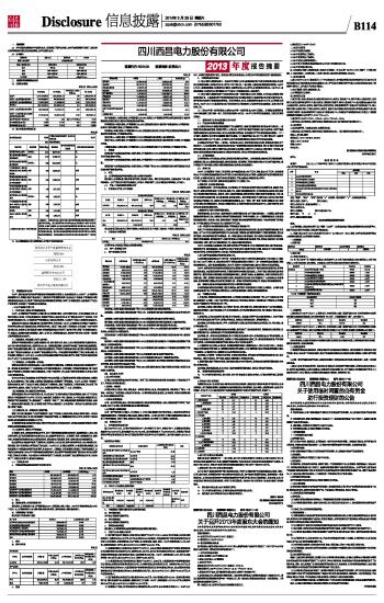 四川西昌电力股份有限公司2013年度报告摘要 2014-03-29 来源:证券时报网 作者: