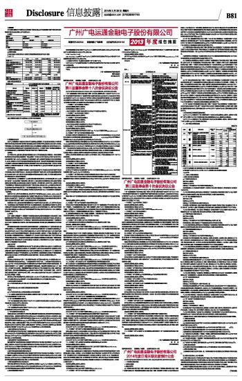 广州广电运通金融电子股份有限公司2013年度报告摘要 2014-03-29 来源:证券时报网 作者: