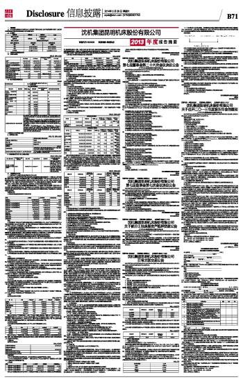 沈机集团昆明机床股份有限公司2013年度报告摘要