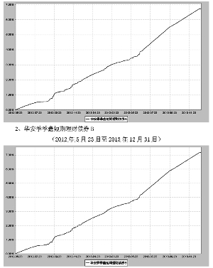 基金管理人:华安基金管理有限公司 基金托管人:中国工商银行股份有限公司 报告送出日期:二〇一四年三月三十一日 §1 重要提示及目录 1.1 重要提示 基金管理人的董事会、董事保证本报告所载资料不存在虚假记载、误导性陈述或重大遗漏,并对其内容的真实性、准确性和完整性承担个别及连带的法律责任。本年度报告已经三分之二以上独立董事签字同意,并由董事长签发。 基金托管人中国工商银行股份有限公司根据本基金合同规定,于2014年3月21日复核了本报告中的财务指标、净值表现、利润分配情况、财务会计报告、投资组合报告等内容,保证复核内容不存在虚假记载、误导性陈述或者重大遗漏。 基金管理人承诺以诚实信用、勤勉尽责的原则管理和运用基金资产,但不保证基金一定盈利。 基金的过往业绩并不代表其未来表现。投资有风险,投资者在作出投资决策前应仔细阅读本基金的招募说明书及其更新。 本年度报告摘要摘自年度报告正文,投资者欲了解详细内容,应阅读年度报告正文。 本报告期自2013年1月1日起至12月31日止。 §2 基金简介 2.1 基金基本情况 ■ 2.2 基金产品说明 ■ 2.3 基金管理人和基金托管人 ■ 2.4 信息披露方式 ■ §3 主要财务指标、基金净值表现及利润分配情况 3.1 主要会计数据和财务指标 金额单位:人民币元 ■ 注:1、本期已实现收益指基金本期利息收入、投资收益、其他收入(不含公允价值变动收益)扣除相关费用后的余额,本期利润为本期已实现收益加上本期公允价值变动收益,由于短期理财债券基金采用摊余成本法核算,因此,公允价值变动收益为零,本期已实现收益和本期利润的金额相等。 2、本基金合同于2012年5月23日生效,上年度可比期间自2012年5月23日至2012年12月31日。 3.2 基金净值表现 3.2.1基金份额净值收益率及其与同期业绩比较基准收益率的比较 1. 华安季季鑫短期理财债券A ■ 2. 华安季季鑫短期理财债券B ■ 3.2.2自基金合同生效以来基金份额累计净值收益率变动及其与同期业绩比较基准收益率变动的比较 华安季季鑫短期理财债券型证券投资基金 份额累计净值增长率与业绩比较基准收益率历史走势对比图 (2012年5月23日至2013年12月31日) 1、华安季季鑫短期理财债券A (2012年5月23日至2013年12月31日) ■ 注:根据《华安季季鑫短期理财债券型证券投资基金基金合同》规定,本基金已自基金合同生效之日起每个运作期的10 个工作日内使基金的投资组合比例符合基金合同第十二部分投资范围的有关规定。 3.2.3自基金合同生效以来基金每年净值收益率及其与同期业绩比较基准收益率的比较 华安季季鑫短期理财债券型证券投资基金 合同生效日以来净值收益率与业绩比较基准收益率的柱形对比图 1、华安季季鑫短期理财债券A ■ 注:合同生效当年按实际存续期计算,不按整个自然年度进行折算。 3.3自基金合同生效以来基金的利润分配情况 1、华安季季鑫短期理财债券A 金额单位:人民币元 ■ 2、华安季季鑫短期理财债券B 金额单位:人民币元 ■ §4 管理人报告 4.1 基金管理人及基金经理情况 4.1.1基金管理人及其管理基金的经验 华安基金管理有限公司经中国证监会证监基金字[1998]20号文批准于1998年6月设立,是国内首批基金管理公司之一,注册资本1.5亿元人民币,公司总部设在上海陆家嘴金融贸易区。目前的股东为上海电气(集团)总公司、上海国际信托有限公司、上海工业投资(集团)有限公司、上海锦江国际投资管理有限公司和国泰君安投资管理股份有限公司。 截至2013年12月31日,公司旗下共管理了华安安顺封闭1只封闭式证券投资基金,华安创新混合、华安中国A股增强指数、华安现金富利货币、华安宝利配置混合、华安宏利股票、华安中小盘成长股票、华安策略优选股票、华安核心优选股票、华安稳定收益债券、华安动态灵活混合、华安强化收益债券、华安行业轮动股票、华安上证180ETF、华安上证180ETF联接、华安上证龙头企业ETF、龙头ETF联接、华安升级主题股票、华安稳固收益债券、华安可转换债基金、华安深证300指数基金(LOF)、华安科技动力股票、华安四季红债券、华安香港精选股票、华安大中华升级股票、华安标普石油指数基金(QDII-LOF)、华安月月鑫短期理财债券、华安季季鑫短期理财债券、华安月安鑫短期理财债券、华安七日鑫短期理财债券、华安沪深300指数分级、华安逆向策略、华安日日鑫货币、华安安心收益债券、华安信用增强债券、华安纯债债券、华安保本混合、华安双债添利债券、华安安信消费股票、华安纳斯达克100指数、华安黄金易(ETF)、华安黄金ETF联接、华安沪深300量化指数、华安年年红债券、华安生态优先股票、华安中证细分地产ETF、华安中证细分医药ETF等46只开放式基金。管理资产规模达到838.62亿元人民币。 4.1.2基金经理(或基金经理小组)及基金经理助理的简介 ■ 注:1.此处的任职日期和离任日期均指公司作出决定之日,即以公告日为准。 2.证券从业的含义遵从行业协会《证券业从业人员资格管理办法》的相关规定。 4.2 管理人对报告期内本基金运作遵规守信情况的说明 本报告期内,本基金管理人严格遵守有关法律法规及《华安季季鑫短期理财债券型证券投资基金基金合同》、《华安季季鑫短期理财债券型证券投资基金招募说明书》等有关基金法律文件的规定,本