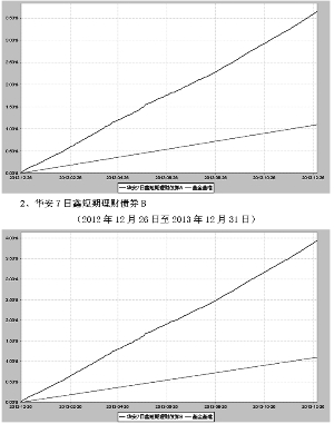 基金管理人:华安基金管理有限公司 基金托管人:中国建设银行股份有限公司 报告送出日期:二〇一四年三月三十一日 §1 重要提示及目录 1.1 重要提示 基金管理人的董事会、董事保证本报告所载资料不存在虚假记载、误导性陈述或重大遗漏,并对其内容的真实性、准确性和完整性承担个别及连带的法律责任。本年度报告已经三分之二以上独立董事签字同意,并由董事长签发。 基金托管人中国建设银行股份有限公司根据本基金合同规定,于2014年3月21日复核了本报告中的财务指标、净值表现、利润分配情况、财务会计报告、投资组合报告等内容,保证复核内容不存在虚假记载、误导性陈述或者重大遗漏。 基金管理人承诺以诚实信用、勤勉尽责的原则管理和运用基金资产,但不保证基金一定盈利。 基金的过往业绩并不代表其未来表现。投资有风险,投资者在作出投资决策前应仔细阅读本基金的招募说明书及其更新。 本年度报告摘要摘自年度报告正文,投资者欲了解详细内容,应阅读年度报告正文。 本报告期自2013年1月1日起至12月31日止。 §2 基金简介 2.1 基金基本情况 ■ 2.2 基金产品说明 ■ 2.3 基金管理人和基金托管人 ■ 2.4 信息披露方式 ■ §3 主要财务指标、基金净值表现及利润分配情况 3.1 主要会计数据和财务指标 金额单位:人民币元 ■ 注:1、本期已实现收益指基金本期利息收入、投资收益、其他收入(不含公允价值变动收益)扣除相关费用后的余额,本期利润为本期已实现收益加上本期公允价值变动收益,由于短期理财债券基金采用摊余成本法核算,因此,公允价值变动收益为零,本期已实现收益和本期利润的金额相等。 2、本基金于2012年12月26日成立。 3.2 基金净值表现 3.2.1基金份额净值收益率及其与同期业绩比较基准收益率的比较 1. 华安7日鑫短期理财债券A ■ 2. 华安7日鑫短期理财债券B ■ 注:本基金业绩比较基准:人民币七天通知存款利率(税后)。 根据本基金合同的有关规定:本基金投资于法律法规允许的金融工具,包括现金,通知存款,短期融资券,一年以内(含一年)的银行定期存款和大额存单,剩余期限(或回售期限)在397 天以内(含397天)的债券、中期票据、资产支持证券,期限在一年以内(含一年)的债券回购,期限在一年以内(含一年)的中央银行票据,以及法律法规或中国证监会允许本基金投资的其他固定收益类金融工具。 3.2.2自基金合同生效以来基金份额累计净值收益率变动及其与同期业绩比较基准收益率变动的比较 华安7日鑫短期理财债券型证券投资基金 份额累计净值增长率与业绩比较基准收益率历史走势对比图 (2012年12月26日至2013年12月31日) 1、华安7日鑫短期理财债券A (2012年12月26日至2013年12月31日) ■ 注:根据《华安7日鑫短期理财债券型证券投资基金基金合同》,本基金建仓期为14个交易日。基金管理人已自基金合同生效之日起14个交易日内使基金的投资组合比例符合基金合同的有关约定。 3.2.3自基金合同生效以来基金每年净值收益率及其与同期业绩比较基准收益率的比较 华安7日鑫短期理财债券型证券投资基金 合同生效日以来净值收益率与业绩比较基准收益率的柱形对比图 1、华安7日鑫短期理财债券A ■ 注:合同生效当年按实际存续期计算,不按整个自然年度进行折算。 3.3自基金合同生效以来基金的利润分配情况 1、华安7日鑫短期理财债券A 金额单位:人民币元 ■ 2、华安7日鑫短期理财债券B 金额单位:人民币元 ■ §4 管理人报告 4.1 基金管理人及基金经理情况 4.1.1基金管理人及其管理基金的经验 华安基金管理有限公司经中国证监会证监基金字[1998]20号文批准于1998年6月设立,是国内首批基金管理公司之一,注册资本1.5亿元人民币,公司总部设在上海陆家嘴金融贸易区。目前的股东为上海电气(集团)总公司、上海国际信托有限公司、上海工业投资(集团)有限公司、上海锦江国际投资管理有限公司和国泰君安投资管理股份有限公司。 截至2013年12月31日,公司旗下共管理了华安安顺封闭1只封闭式证券投资基金,华安创新混合、华安中国A股增强指数、华安现金富利货币、华安宝利配置混合、华安宏利股票、华安中小盘成长股票、华安策略优选股票、华安核心优选股票、华安稳定收益债券、华安动态灵活混合、华安强化收益债券、华安行业轮动股票、华安上证180ETF、华安上证180ETF联接、华安上证龙头企业ETF、龙头ETF联接、华安升级主题股票、华安稳固收益债券、华安可转换债基金、华安深证300指数基金(LOF)、华安科技动力股票、华安四季红债券、华安香港精选股票、华安大中华升级股票、华安标普石油指数基金(QDII-LOF)、华安月月鑫短期理财债券、华安季季鑫短期理财债券、华安月安鑫短期理财债券、华安七日鑫短期理财债券、华安沪深300指数分级、华安逆向策略、华安日日鑫货币、华安安心收益债券、华安信用增强债券、华安纯债债券、华安保本混合、华安双债添利债券、华安安信消费股票、华安纳斯达克100指数、华安黄金易(ETF)、华安黄金ETF联接、华安沪深300量化指数、华安年年红债券、华安生态优先股票、华安中证细分地产ETF、华安中证细分医药ETF等46只开放式基金。管理资产规模达到838.62亿元人民币。 4.1.2基金经理(或基金经理小组)及基金经理助理的简介 ■ 注:1、此处的任职日期和离任日期均指公