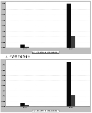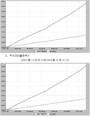 基金管理人:华安基金管理有限公司 基金托管人:中国建设银行股份有限公司 报告送出日期:二〇一四年三月三十一日 §1 重要提示及目录 1.1 重要提示 基金管理人的董事会、董事保证本报告所载资料不存在虚假记载、误导性陈述或重大遗漏,并对其内容的真实性、准确性和完整性承担个别及连带的法律责任。本年度报告已经三分之二以上独立董事签字同意,并由董事长签发。 基金托管人中国建设银行股份有限公司根据本基金合同规定,于2014年3月21日复核了本报告中的财务指标、净值表现、利润分配情况、财务会计报告、投资组合报告等内容,保证复核内容不存在虚假记载、误导性陈述或者重大遗漏。 基金管理人承诺以诚实信用、勤勉尽责的原则管理和运用基金资产,但不保证基金一定盈利。 基金的过往业绩并不代表其未来表现。投资有风险,投资者在作出投资决策前应仔细阅读本基金的招募说明书及其更新。 本年度报告摘要摘自年度报告正文,投资者欲了解详细内容,应阅读年度报告正文。 本报告期自2013年1月1日起至12月31日止。 §2 基金简介 2.1 基金基本情况 ■ 2.2 基金产品说明 ■ 2.3 基金管理人和基金托管人 ■ 2.4 信息披露方式 ■ §3 主要财务指标、基金净值表现及利润分配情况 3.1 主要会计数据和财务指标 金额单位:人民币元 ■ 注:1、本基金收益分配按月结转份额。 2、本期已实现收益指基金本期利息收入、投资收益、其他收入(不含公允价值变动收益)扣除相关费用后的余额,本期利润为本期已实现收益加上本期公允价值变动收益,由于货币市场基金采用摊余成本法核算,因此,公允价值变动收益为零,本期已实现收益和本期利润的金额相等。 3.2 基金净值表现 3.2.1基金份额净值收益率及其与同期业绩比较基准收益率的比较 1. 华安日日鑫货币A ■ 2. 华安日日鑫货币B ■ 注:本基金业绩比较基准:同期七天通知存款利率(税后)。 根据本基金合同的有关规定:本基金投资于法律法规及监管机构允许投资的金融工具,包括:现金,通知存款,短期融资券,一年以内(含一年)的银行定期存款、大额存单,期限在一年以内(含一年)的债券回购,期限在一年以内(含一年)的中央银行票据,剩余期限(或回售期限)在397天以内(含397天)的债券、资产支持证券、中期票据,以及中国证监会、中国人民银行认可的其他具有良好流动性的金融工具。 3.2.2自基金合同生效以来基金份额累计净值收益率变动及其与同期业绩比较基准收益率变动的比较 华安日日鑫货币市场基金 份额累计净值增长率与业绩比较基准收益率历史走势对比图 (2012年11月26日至2013年12月31日) 1、华安日日鑫货币A (2012年11月26日至2013年12月31日) ■ 3.2.3自基金合同生效以来基金每年净值收益率及其与同期业绩比较基准收益率的比较 华安日日鑫货币市场基金 合同生效日以来净值收益率与业绩比较基准收益率的柱形对比图 1、华安日日鑫货币A ■ 注:合同生效当年按实际存续期计算,不按整个自然年度进行折算。 3.3自基金合同生效以来基金的利润分配情况 1、华安日日鑫货币A 金额单位:人民币元 ■ 2、华安日日鑫货币B 金额单位:人民币元 ■ §4 管理人报告 4.1 基金管理人及基金经理情况 4.1.1基金管理人及其管理基金的经验 华安基金管理有限公司经中国证监会证监基金字[1998]20号文批准于1998年6月设立,是国内首批基金管理公司之一,注册资本1.5亿元人民币,公司总部设在上海陆家嘴金融贸易区。目前的股东为上海电气(集团)总公司、上海国际信托有限公司、上海工业投资(集团)有限公司、上海锦江国际投资管理有限公司和国泰君安投资管理股份有限公司。 截至2013年12月31日,公司旗下共管理了华安安顺封闭1只封闭式证券投资基金,华安创新混合、华安中国A股增强指数、华安现金富利货币、华安宝利配置混合、华安宏利股票、华安中小盘成长股票、华安策略优选股票、华安核心优选股票、华安稳定收益债券、华安动态灵活混合、华安强化收益债券、华安行业轮动股票、华安上证180ETF、华安上证180ETF联接、华安上证龙头企业ETF、龙头ETF联接、华安升级主题股票、华安稳固收益债券、华安可转换债基金、华安深证300指数基金(LOF)、华安科技动力股票、华安四季红债券、华安香港精选股票、华安大中华升级股票、华安标普石油指数基金(QDII-LOF)、华安月月鑫短期理财债券、华安季季鑫短期理财债券、华安月安鑫短期理财债券、华安七日鑫短期理财债券、华安沪深300指数分级、华安逆向策略、华安日日鑫货币、华安安心收益债券、华安信用增强债券、华安纯债债券、华安保本混合、华安双债添利债券、华安安信消费股票、华安纳斯达克100指数、华安黄金易(ETF)、华安黄金ETF联接、华安沪深300量化指数、华安年年红债券、华安生态优先股票、华安中证细分地产ETF、华安中证细分医药ETF等46只开放式基金。管理资产规模达到838.62亿元人民币。 4.1.2基金经理(或基金经理小组)及基金经理助理的简介 ■ 注:1、此处的任职日期和离任日期均指公司作出决定之日,即以公告日为准。 2、证券从业的含义遵从行业协会《证券业从业人员资格管理办法》的相关规定。 4.2 管理人对报告期内本基金运作遵规守信情况的说明 本报告期内,本基金管理人严格遵守《证券投资基金法》等有关法律法规及基金合同