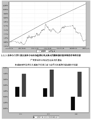 基金管理人:广发基金管理有限公司 基金托管人:中国工商银行股份有限公司 报告送出日期:二〇一四年三月三十一日 §1 重要提示 1.1 重要提示 基金管理人的董事会、董事保证本报告所载资料不存在虚假记载、误导性陈述或重大遗漏,并对其内容的真实性、准确性和完整性承担个别及连带的法律责任。本年度报告已经三分之二以上独立董事签字同意,并由董事长签发。 基金托管人中国工商银行股份有限公司根据本基金合同规定,于2014年3月25日复核了本报告中的财务指标、净值表现、利润分配情况、财务会计报告、投资组合报告等内容,保证复核内容不存在虚假记载、误导性陈述或者重大遗漏。 基金管理人承诺以诚实信用、勤勉尽责的原则管理和运用基金资产,但不保证基金一定盈利。 基金的过往业绩并不代表其未来表现。投资有风险,投资者在作出投资决策前应仔细阅读本基金的招募说明书及其更新。 本年度报告摘要摘自年度报告正文,投资者欲了解详细内容,应阅读年度报告正文。 本报告期自2013年1月1日起至12月31日止。 §2 基金简介 2.1基金基本情况 ■ 2.2 基金产品说明 ■ 2.3 基金管理人和基金托管人 ■ 2.4 信息披露方式 ■ §3 主要财务指标、基金净值表现及利润分配情况 3.1 主要会计数据和财务指标 金额单位:人民币元 ■ 注:1、本期已实现收益指基金本期利息收入、投资收益、其他收入(不含公允价值变动收益)扣除相关费用后的余额,本期利润为本期已实现收益加上本期公允价值变动收益。 2、期末可供分配利润,采用期末资产负债表中未分配利润与未分配利润中已实现部分的孰低数(为期末余额,不是当期发生数)。 3、所述基金业绩指标不包括持有人认购或交易基金的各项费用,计入费用后实际收益水平要低于所列数字。 3.2 基金净值表现 3.2.1 基金份额净值增长率及其与同期业绩比较基准收益率的比较 ■ 注:业绩比较基准:3年期银行定期存款税后收益率。 3.2.2 自基金合同生效以来基金份额累计净值增长率变动及其与同期业绩比较基准收益率变动的比较 广发聚祥保本混合型证券投资基金 份额累计净值增长率与业绩比较基准收益率的历史走势对比图 (2011年3月15日至2013年12月31日) ■ 注:基金合同生效当年(2011年)按实际存续期计算,未按自然年度进行折算。 3.3 过去三年基金的利润分配情况 本基金自合同生效日(2011年3月15日)至报告期末未进行利润分配。 §4 管理人报告 4.1 基金管理人及基金经理情况 4.1.1基金管理人及其管理基金的经验 本基金管理人经中国证监会证监基金字[2003]91号文批准,于2003年8月5日成立,注册资本1.2亿元人民币。公司的股东为广发证券股份有限公司、烽火通信科技股份有限公司、深圳市前海香江金融控股集团有限公司、康美药业股份有限公司和广州科技风险投资有限公司。公司拥有公募基金、社保基金投资管理人、受托管理保险资金投资管理人、合格境内机构投资者境外证券投资管理(QDII)和特定客户资产管理等业务资格。 本基金管理人在董事会下设合规及风险管理委员会、薪酬与资格审查委员会、战略规划委员会三个专业委员会。公司下设投资决策委员会、风险控制委员会和19个部门:综合管理部、财务部、人力资源部、监察稽核部、基金会计部、注册登记部、信息技术部、中央交易部、金融工程部、研究发展部、投资管理部、固定收益部、机构投资部、数量投资部、量化投资部、机构理财部、市场拓展部、电商及客服部、国际业务部。此外,还设立了广发国际资产管理有限公司(香港子公司)、瑞元资本管理有限公司以及北京办事处、北京分公司、广州分公司、上海分公司、深圳理财中心、杭州理财中心。 截至2013年12月31日,本基金管理人管理四十五只开放式基金---广发聚富开放式证券投资基金、广发稳健增长开放式证券投资基金、广发小盘成长股票型证券投资基金(LOF)、广发货币市场基金、广发聚丰股票型证券投资基金、广发策略优选混合型证券投资基金、广发大盘成长混合型证券投资基金、广发增强债券型证券投资基金、广发核心精选股票型证券投资基金、广发沪深300指数证券投资基金、广发聚瑞股票型证券投资基金、广发中证500指数证券投资基金(LOF)、广发内需增长灵活配置混合型证券投资基金、广发亚太(除日本)精选股票证券投资基金、广发行业领先股票型证券投资基金、广发聚祥保本混合型证券投资基金、广发中小板300交易型开放式指数证券投资基金、广发中小板300交易型开放式指数证券投资基金联接基金、广发标普全球农业指数证券投资基金、广发聚利债券型证券投资基金、广发制造业精选股票型证券投资基金、广发聚财信用债证券投资基金、广发深证100指数分级证券投资基金、广发消费品精选股票型证券投资基金、广发理财年年红债券型证券投资基金、广发纳斯达克100指数证券投资基金,广发双债添利债券型证券投资基金、广发纯债债券型证券投资基金、广发理财30天债券型证券投资基金、广发新经济股票型发起式证券投资基金、广发中证500交易型开放式指数证券投资基金、广发聚源定期开放债券型证券投资基金、广发轮动配置股票型证券投资基金、广发聚鑫债券型证券投资基金、广发理财7天债券型证券投资基金、广发美国房地产指数证券投资基金