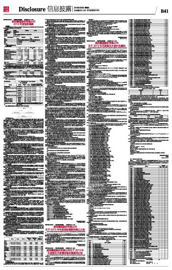 证券代码:000333 证券简称:美的集团 公告编号:2014-025 美的集团股份有限公司 2013年度报告摘要 1、重要提示 本年度报告摘要来自年度报告全文,投资者欲了解详细内容,应当仔细阅读同时刊载于深圳证券交易所网站等中国证监会指定网站上的年度报告全文。 公司简介 ■ 2、主要财务数据和股东变化 (1)主要财务数据 ■ 注:美的集团在2013年9月完成了发行股份换股吸收合并美的电器,导致美的集团对美的电器持股比例发生变化,换股前按照美的集团持股美的电器41.17%计算, 换股后按美的集团持股美的电器100%计算。 为便于投资者更好的理解美的集团的整体经营业绩,并与公司所发布的2013年度备考盈利预测相对应,依据备考利润表的口径(即假设本次换股吸收合并已于2012年1月1日完成),相关项目的对比变动情况如下: ■ 天健会计师事务所出具了《关于美的集团股份有限公司实际盈利数与盈利预测数差异的鉴证报告》,公司2013年度实现备考盈利为73.00亿元,超过了公司的《换股吸收合并报告书》所发布的备考盈利预测69.31亿元。 (2)前10名股东持股情况表 单位:股 ■ (3)以方框图形式披露公司与实际控制人之间的产权及控制关系 ■ 3、管理层讨论与分析 2013年,公司以“产品领先、效率驱动、全球经营”三大战略主轴为指引,围绕“聚焦产业、做好产品、确保规模、改善盈利”四大核心工作,清晰业务结构,精简组织层级,发挥协同优势,深入推动经营转型,以消费者为中心,加强科技创新投入与产品开发,提升基础与核心技术能力,提升产品力与品质管控水平,推进“一个美的、一个标准、一个体系”的制度建设与流程优化,不断提高精细化管理水平与运营效率。2013年,公司产品力显著提升,产品结构持续优化,产品口碑与市场份额稳步回升,进一步夯实了公司面向未来竞争的可持续发展能力。2013年,公司实现整体营业总收入 1,212.65 亿元,同比增长18.06%,其中大家电业务(空调、冰箱、洗衣机)实现收入783.62亿元,同比增长23.15%,小家电业务实现收入278.44亿元,同比增长8.08%,电机业务实现收入68.86亿元(含内部销售),同比增长9.77%,物流业务实现收入26.31亿元(含内部销售),同比增长5.96%,主要因产品结构升级、成本管控、原料成本稳定等因素影响,2013年公司整体毛利率为23.28%,同比上升0.72个百分点。 2013年,据全国工商联、中国企业联合会及广东省企业联合会评定,美的位列中国民营企业500强第十名,中国制造业企业500强第41名,广东企业500强第八名,广东制造业百强第二名。2013年中国最有价值品牌榜单,美的品牌价值超过653亿元,稳居品牌榜第五。在2013中国家用电器行业峰会上,公司荣获“2012-2013年度最具影响力品牌”奖项,在第三届“中国自主创新年会”上,美的集团获得2013年度中国“十大创新型企业”荣誉,成为家电行业中唯一获此殊荣的家电企业。 2013年,公司开展的主要工作如下: 1、以消费者为中心,聚焦节能、智能、健康产品开发与科技投入,不断提升产品力; 公司以做好产品的基本理念,开展全流程消费者研究,成立物联网应用技术及流体技术研究室,不断加大产品、材料及智能化、网络化、变频化为基础的核心技术投入,推出了包括云智能空调、香甜好米饭IH智能煲、磨盘系列豆浆机、高温蒸汽洗油烟机、活水热水器等一系列新品,不但引领行业技术升级,同时也带动了消费的升级,在业界和市场均赢得良好口碑。截至2013年底,公司专利申请总量为5,647件,被认定为首批“国家级知识产权示范企业”。 ——空调领域 美的云智能空调,借助美的全球首款红外/网络双模家电手机应用软件,实现用户通过使用手机、iPad等设备对空调进行远程状态查询、语音控制、静音控制、电量管理、定时关开机及睡眠曲线自定义等多种功能; 美的 “高频速冷热”空调技术,应用高频启动技术匹配高效变频压缩机、强劲风扇电机及高精度换热系统,解决了空调开机需要等待的环节,令空调开机达到极速制冷、制热的效果; 美的全球第一条联合国多边基金R290新冷媒示范线顺利通过验收,拿到国内第一张3C认证证书,已收到来自欧洲、非洲、中东、东南亚等世界各地的需求,相继研发完成的数款环保制冷剂空调机型,都分别获得中国3C认证,欧洲CB、CE认证、澳洲SAA认证,打开了美的环保制冷剂空调进入海内外市场的大门; 美的中央空调,推出了引领世界能效7时代的超高效双级压缩降膜式离心机及MDVX全直流变频多联机,以国际领先的姿态推动行业技术革新,在服务客户方面,建立了售前、售中、售后一条龙服务体系,通过全国3000多家服务商构成了覆盖全国各地的强大服务网络,被授予建筑业品质最高荣誉——“鲁班奖工程功勋供应商”。 空调领域,美的获得的业内奖项还包括:美的凭借“房间空调器高效节能关键技术的研究及应用”项目荣获科技进步一等奖,为空调行业唯一获中国轻工业联合会科技奖励一等奖殊荣的企业;美的空调“一晚低至1度电”尚弧挂机与KH双贯流柜机,收获德国柏林消费电子展(IFA)“产品创新奖”与“工业设计创新奖”两项大奖,尚弧挂机,同时获“艾普兰空调产品奖” ,成为空调行业首个通过国家“软件安全评估”的产品,并获得由中国质量认证中心颁发的第一张依据APF新标准进行认证的节能证书,KF柜机以创新双贯流风道结构和智能触控交互设计获2013中国设计红星奖;?美的空调
