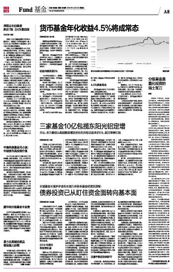 2014年以来,债市在回暖中经历了短线调整,市场分歧增加。对此,正在发行的中海纯债基金拟任基金经理冯小波较为乐观。剔除季末因素的影响,冯小波认为,未来一定时期内货币政策趋势性转紧的可能性不大,货币市场流动性将由较为宽松的局面逐步转向正常化。 就当前的市场投资环境来看,冯小波指出,中国经济将中长期处于增速下降和结构调整的过程中,在经济长期底部尚未到来之前,债市面临的系统性风险不大。 债券市场年初至今已经悄然回暖。债券市场经历了去年的大幅度回调之后,当前整体收益率水平已较具吸引力,10年期国债收益率目前在4.5%附近,政策性金融债和其他信用债券的利率水平更高。他乐观地预计,今年债券市场仍将延续年初以来的牛市行情。(程俊琳) 本版导读: