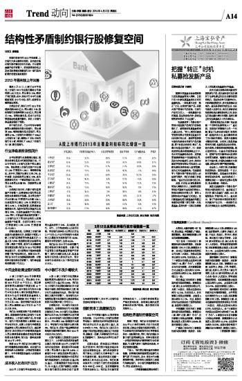 结构性矛盾制约银行股修复空间 2014-04-03 来源:证券时报网 作者:甘宗卫 翁睛晶