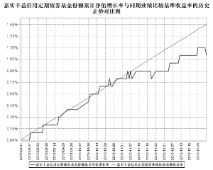 (上接B46版) 5、中小企业私募债券投资策略 中小企业私募债票面利率较高、信用风险较大、二级市场流动性较差。 中小企业私募债收益率由基准收益率与信用利差叠加组成,信用风险表现在信用利差的变化上;信用利差主要受两方面影响,一是系统性信用风险,即该信用债对应信用水平的市场信用利差曲线变化;二是非系统性信用风险,即该信用债本身的信用变化。 针对市场系统性信用风险,本基金主要通过调整中小企业私募债类属资产的配置比例,谋求避险增收。因为经济周期的复苏初期通常是中小企业私募债表现的最佳阶段,而过热期通常是中小企业私募债表现的最差阶段。本基金运用深刻的基本面研究,力求前瞻性判断经济周期,在经济周期的复苏初期保持适当增加的中小企业私募债配置比例,在经济周期的过热期保持适当降低的中小企业私募债配置比例。 针对非系统性信用风险,本基金通过“嘉实信用分析系统”,分析发债主体的信用水平及个债增信措施,量化比较判断估值,精选个债,谋求避险增收。 针对流动性风险,本基金在控制信用风险的基础上,对中小企业私募债投资,主要采取分散投资,控制个债持有比例;主要采取买入持有到期策略;当预期发债企业的基本面情况出现恶化时,采取“尽早出售(first sale, best sale)”策略,控制投资风险。 6、可转债投资策略 本基金将根据组合风险控制措施,纪律性地控制可转债总体投资仓位。在个债选择上,本基金将深入研究内在债券价值(如票面利息、利息补偿及无条件回售价格)、保护条款的适用范围、期权价值、基础股票的质地和成长性、流通性,发现投资价值,积极寻找各种套利机会,谋求在较高安全边际下获取增强收益。 7、投资决策 (1) 决策依据 1)国家有关法律、法规和本基金合同的有关规定。 2)宏观经济、微观经济运行状况,货币政策和财政政策执行状况,货币市场和证券市场运行状况。 3)分析师各自独立完成相应的研究报告,为投资策略提供依据。 (2) 决策程序 1)投资决策委员会定期和不定期召开会议,根据基金投资目标和对市场的判断决定基金的总体投资策略,审核并批准基金经理提出的资产配置方案或重大投资决定。 2)相关研究部门或岗位根据嘉实中央研究平台、嘉实信用分析系统等流程规定,进行分析,提出分析报告。 3)基金经理根据投资决策委员会的决议,参考研究部门提出的报告,并依据基金申购和赎回的情况控制投资组合的流动性风险,制定具体资产配置和调整计划,进行投资组合的构建和日常管理。 4)交易部依据基金经理的指令,制定交易策略并执行交易。 5)监察稽核部负责监控基金的运作管理是否符合法律、法规及基金合同和公司相关管理制度的规定;风险管理部门运用风险监测模型以及各种风险监控指标,对市场预期风险进行风险测算,对基金组合的风险进行评估,提交风险监控报告;风险控制委员会根据市场变化对基金投资组合进行风险评估与监控。 九、基金的业绩比较基准 本基金的业绩比较基准 = 一年期银行定期存款税后收益率 + 1.1% 上述“一年期银行定期存款收益率”是指当期封闭期的第1个工作日中国人民银行公布并执行的一年期“金融机构人民币存款基准利率”。 如果今后法律法规发生变化,或者有更权威的、更能为市场普遍接受的业绩比较基准推出,经基金管理人与基金托管人协商,本基金可以在报中国证监会备案后变更业绩比较基准并及时公告,而无需召开基金份额持有人大会。 十、基金的风险收益特征 本基金为债券型基金,其预期风险和预期收益低于股票基金、混合基金,高于货币市场基金。 十一、基金投资组合报告 基金管理人的董事会及董事保证本报告所载资料不存在虚假记载、误导性陈述或重大遗漏,并对其内容的真实性、准确性和完整性承担个别及连带责任。 本基金托管人中国农业银行股份有限公司根据本基金合同规定,于2014年1月15日复核了本报告中的财务指标、净值表现和投资组合报告等内容,保证复核内容不存在虚假记载、误导性陈述或者重大遗漏。 本投资组合报告所载数据截至2013年12月31日(“报告期末”),本报告所列财务数据未经审计。 1.报告期末基金资产组合情况 ■ 2.报告期末按行业分类的股票投资组合 报告期末,本基金未持有股票。 3.报告期末按公允价值占基金资产净值比例大小排序的前十名股票投资明细 报告期末,本基金未持有股票。 4.报告期末按债券品种分类的债券投资组合 ■ 5.报告期末按公允价值占基金资产净值比例大小排名的前五名债券投资明细 ■ 6.报告期末按公允价值占基金资产净值比例大小排名的前十名资产支持证券投资明细 报告期末,本基金未持有资产支持证券。 7.报告期末按公允价值占基金资产净值比例大小排名的前五名权证投资明细 报告期末,本基金未持有权证。 8.报告期末本基金投资的股指期货交易情况说明 报告期内,本基金未参与股指期货交易。 9.报告期末本基金投资的国债期货交易情况说明 报告期内,本基金未参与国债期货交易。 10.投资组合报告附注 (1)报告期内本基金投资的前十名证券的发行主体未被监管部门立案调查,在本报告编制日前一年内本基金投资的前十名证券的发行主体未受到公开谴责、处罚。 (2)本基金投资的前十名股票中,没有超出基金合同规定的备选股票库之外的股