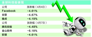 证券时报记者 吴家明 早在上月底,美国科技股市场就出现了集体降温的迹象。而在上周五,纳斯达克指数大跌2.6%,再度激起投资者对科技股的担忧,笼罩在美股科技板块上的阴云更蔓延至全球市场。 科技股集体下跌 在上周五美股交易时段,道琼斯工业平均指数和标普500指数盘中仍在创新高,纳斯达克指数却在科技股的拖累下大跌2.6%,创下近8周以来的单日最大跌幅,道琼斯工业平均指数和标普500指数最终也不得不“低头”。当天,标普500指数十个板块中科技板块跌幅最大,达到2.23%。与此同时,纳斯达克生物技术板块下跌4.1%,自2月25日以来该板块已累计下跌17%。 个股方面,谷歌、雅虎、亚马逊以及在线流媒体视频服务商奈飞的股价跌幅均超过4%,社交网络巨头Facebook的股价也下跌4.61%,该股自3月10日高点以来下跌20%,已跌进“熊市”。此外,电动车巨头特斯拉股价当天也重挫近6%。CMC markets资深分析师切辛斯基表示,投资者在规避高风险股票,并开始逃离特斯拉与Facebook等热门股,这是一个不好的征兆。 美国科技股的抛售潮拖累昨日亚洲科技类股票普遍下跌。在日本东京股市交易的松下电器下跌3.7%,东京电子跌3.1%,软银股价盘中下跌近5%。在香港上市的科技股同样遭受重创,金山软件下挫超过6%,腾讯控股盘中下跌超过5%,一度跌破500港元大关。与3月7日的高点646港元相比,腾讯控股股价一个月来已经下跌近20%。此外,腾讯控股在上月跌破万亿港元市值。此前5年,该股累计上涨1266%。而在昨日,在科技股下跌的拖累下欧洲股市大幅低开,三大股指盘中跌幅接近1%。 对冲基金损失惨重 彭博亚太互联网指数昨日也下跌3.7%。由于市场预计社交网络、电子商务和网络游戏企业的利润将会进一步提升,彭博亚太互联网指数今年以来的最高涨幅一度达到14%,对应的市盈率达到37倍,为MSCI亚太指数平均市盈率的两倍,“泡沫”担忧四起。 科技股的大跌让重仓的对冲基金措手不及。在3月份最后一周,美国股票对冲基金创2001年以来最差的单周业绩表现,多家顶尖对冲基金的业绩在3月出现大幅下滑。据悉,曾是全球最大主打科技股的对冲基金Andor Capital上个月遭遇18%的亏损,另一家大型对冲基金Discovery Capital资产管理规模达到150亿美元,其旗舰基金上个月也损失了9.3%。高盛的报告显示,Facebook、亚马逊、雅虎是对冲基金最普遍持有的股票。对此,有市场人士开始担心,对冲基金持仓最集中的股票无疑是短期内风险最高的股票。 资金流入价值股? 上周五出现的暴跌行情只是3月份以来美国热门股表现的缩影,Facebook和特斯拉这样耳熟能详的名字以及许多生物技术、云计算股票在过去一个月遭遇重挫。不过,跑赢大盘的却是那些曾经“不起眼”的防御类股票,包括美国泰森食品、强生甚至是巴菲特旗下的伯克希尔哈撒韦公司,其中美国泰森食品今年以来的股价已经累计上涨25%。 有投资者认为,全球科技股持续下跌预示着以金融、制造业以及传统行业为代表的“价值股”表现将逐渐开始超越大盘。《华尔街日报》知名金融报道记者菲利普斯表示,这看起来更像是市场情绪的转变,可能有着非常巨大的意义,意味着此前那些没有基本面支撑却疯狂上涨的股票开始承压。东京三井住友资产管理公司高级策略师Masaru Hamasaki则表示,科技股出现泡沫和估值过高的情况,这些企业急需提升利润率来降低市场的担忧,但对于整体大盘而言影响不会太大。考虑到美国经济的强劲反弹,从估值过高的股票出逃的资金可能会流入遭到低估的板块。 本版导读: